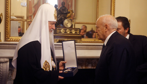 Με τον μεγαλόσταυρο του Τάγματος της Τιμής παρασημοφορήθηκε χθες ο Πατριάρχης Μόσχας Κύριλλος από τον Πρόεδρο της Δημοκρατίας Κάρολο Παπούλια, ολοκληρώνοντας με τη συνάντηση που είχε και με τον πρωθυπουργό Αντώνη Σαμαρά τον πρώτο κύκλο της επίσημης επίσκεψης που πραγματοποιεί στην Αθήνα.