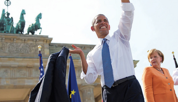 Αυτή τη φορά τίποτε δεν θύμιζε όσα είχαν συμβεί πριν από σχεδόν 5 χρόνια, το 2008 δηλαδή, όταν ο Μπαράκ Ομπάμα, ως υποψήφιος πρόεδρος των ΗΠΑ τότε, είχε βρεθεί στην Πύλη του Βραδεμβούργου στο Βερολίνο, από όπου είχε πει το περίφημο «Ναι, μπορούμε!», απευθυνόμενος σε ένα πλήθος 250.000 ανθρώπων, που νωρίτερα τον είχαν υποδεχθεί περίπου σαν ροκ σταρ!