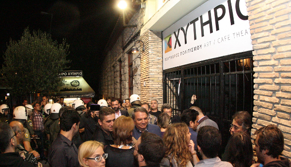 Ενα πάντως από τα ρεζερβέ τραπέζια ήταν αυτό του προέδρου της ΔΗΜ.ΑΡ. Φώτη Κουβέλη, ο οποίος κατέφθασε μετά της συζύγου του Φωτεινής, περίπου στις 9 το βράδυ. Σαράντα πέντε λεπτά αργότερα και αφού το θέατρο είχε πλημμυρίσει από κόσμο κλήθηκε να προλογίσει το γλέντι, κάνοντας μια μικρή αναφορά στη σύντομη ιστορία του κόμματος. Και κάπου εκεί ξεκίνησαν τα τραγούδια από την ολιγομελή ορχήστρα, η οποία σημειωτέον αποτελούνταν από μέλη της ΔΗΜ.ΑΡ.
