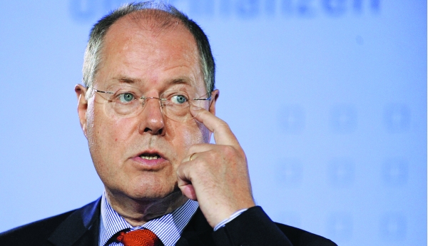Ο υποψήφιος των Σοσιαλδημοκρατών επέκρινε την Ανγκελα Μέρκελ ότι αποκρύπτει από τους Γερμανούς τον βαθμό της κοινής ευθύνης που φέρει και η Γερμανία για το χρέος των χωρών της ευρωζώνης. Την κατηγόρησε ακόμη για την πολιτική της όσον αφορά την επίλυση της κρίσης στην ευρωζώνη και δήλωσε ότι η Γερμανία πρέπει να βοηθήσει τις ασθενέστερες χώρες. Ο Στάινμπρουκ εξέφρασε την απογοήτευσή του για τη γνωμάτευση της νομικής υπηρεσίας της Ευρωπαϊκής Ενωσης, που έγινε γνωστή από διαρροές, σύμφωνα με την οποία ο φόρος επί των χρηματοοικονομικών συναλλαγών δεν μπορεί να επιβληθεί εντός νόμιμου πλαισίου. «Θα μπορούσε να χρηματοδοτήσει ένα σχέδιο Μάρσαλ για τις χώρες αυτές» δήλωσε.
