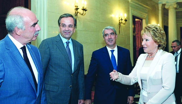 Και όχι μόνον αυτό. Σύμφωνα με κυβερνητικές πηγές, η Βαλεντίνα Ματβιένκο ανέφερε επίσης στον Αντώνη Σαμαρά ότι υπάρχει έντονο επενδυτικό ενδιαφέρον από ρωσικές εταιρίες και εξέφρασε την κατηγορηματική βούληση της ρωσικής κυβέρνησης να στηρίξει με κάθε τρόπο αυτές τις επενδύσεις.