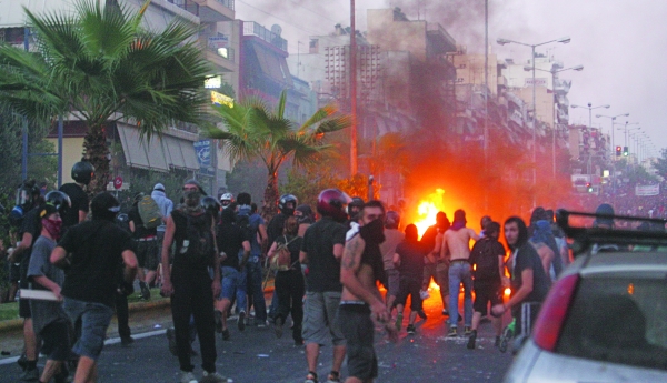 Η «απάντηση» των αστυνομικών ήταν άμεση και δυναμική. Τα ΜΑΤ έκαναν εκτεταμένη χρήση χημικών, δακρυγόνων και χειροβομβίδων κρότου-λάμψης, προκειμένου να διαλύσουν τις ομάδες των επιτιθεμένων. Η κίνηση αυτή είχε ως αποτέλεσμα η πορεία να σπάσει σε πολλά μικρότερα κομμάτια και κατά συνέπεια τα επεισόδια να γενικευτούν και να μεταφερθούν σε αρκετά σημεία. Για περισσότερες από δύο ώρες, οι κουκουλοφόροι ξεσπούσαν την οργή τους σε τράπεζες, ενεχυροδανειστήρια και οτιδήποτε άλλο μπορούσαν να σπάσουν και να καταστρέψουν. Την ίδια στιγμή οι δυνάμεις των ΜΑΤ προσπαθούσαν να περιορίσουν την καταστροφική μανία των κουκουλοφόρων με τη χρήση δακρυγόνων και χημικών, με αποτέλεσμα η ατμόσφαιρα στην περιοχή να είναι αποπνικτική και οι κάτοικοι, που για πρώτη φορά ζούσαν στην πόλη τους τόσο βίαια επεισόδια, να κλείνονται στα σπίτια τους προκειμένου να προστατευτούν.