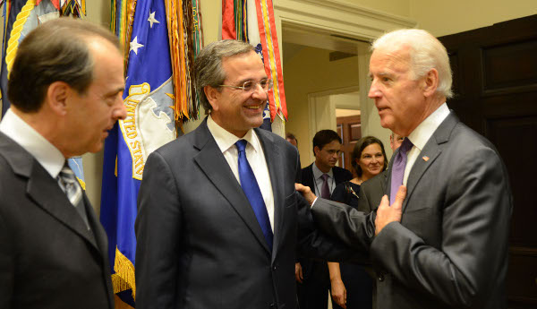 Μπορεί το μυαλό του πρωθυπουργού Αντώνη Σαμαρά να βρισκόταν στην Αθήνα, μια και οι εξελίξεις στο θέμα της Χρυσής Αυγής έτρεχαν, όμως τα καλά λόγια που άκουσε από τον Αμερικανό αντιπρόεδρο Τζο Μπάιντεν αλλά και από τους εκπροσώπους του Κογκρέσου έκαναν την ελληνική αποστολή να χαμογελάσει. Μάλιστα, σε ανακοίνωσή του μετά τη συνάντηση Σαμαρά – Μπάιντεν, ο Λευκός Οίκος εκφράζει τη στήριξή του στις ελληνικές προσπάθειες για την ενίσχυση της ανταγωνιστικότητας της οικονομίας. Παράλληλα τονίζεται ότι ο Αμερικανός αντιπρόεδρος και ο Ελληνας πρωθυπουργός συζήτησαν διμερή θέματα και περιφερειακά ζητήματα. «Ο αντιπρόεδρος επαίνεσε τον πρωθυπουργό για τη συνεχή δέσμευσή του να προωθήσει τις σκληρές αλλά απαραίτητες μεταρρυθμίσεις που θα οδηγήσουν την Ελλάδα και πάλι σε σταθερές οικονομικές βάσεις, καθώς και για την πρόοδο που έχει ήδη επιτευχθεί» αναφέρει η ανακοίνωση και καταλήγει: «Οι δύο ηγέτες συμφώνησαν να συνεχίσουν να στηρίζουν τις προσπάθειες συμφιλίωσης στην Κύπρο και σε αυτό το πλαίσιο ο αντιπρόεδρος χαιρέτισε την πρόσφατη απόφαση των κυβερνήσεων Ελλάδας και Τουρκίας να συναντηθούν με τον Τουρκοκύπριο και τον Ελληνοκύπριο διαπραγματευτή αντίστοιχα, ως ένα θετικό βήμα προς την κατεύθυνση οικοδόμησης εμπιστοσύνης».