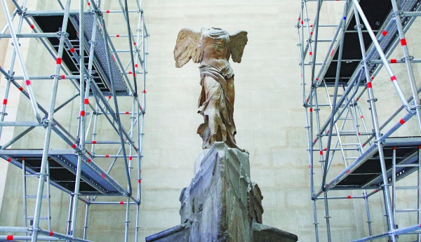 Γύρω της, αντί για επισκέπτες, έχει σκαλωσιές. Και θα τις έχει για ακόμη μερικούς μήνες, έως ότου οι εντατικές εργασίες που γίνονται για τη… θεραπεία της ολοκληρωθούν. Η Νίκη της Σαμοθράκης θα ξανανοίξει τα φτερά της την άνοιξη του 2014, αφού πρώτα βρεθεί το 1.000.000 ευρώ που απαιτείται για την αποπεράτωση του μακρόπνοου έργου συντήρησης του γλυπτού. Από τις αρχές Σεπτεμβρίου έως και τις 31 Δεκεμβρίου το Μουσείο του Λούβρου καλεί όλους μας από κάθε γωνιά του πλανήτη να γίνουμε αρωγοί στο τιτάνιο αυτό εγχείρημα μέσα από την καμπάνια «Ολοι Μαικήνες», προσφέροντας τον οβολό μας. Μέχρι στιγμής, πάντως, όπως μας πληροφορεί και η επίσημη ιστοσελίδα της καμπάνιας www. louvresamothrace.fr, το ποσό που έχει συγκεντρωθεί είναι 410.000 ευρώ. Οσο για την ελληνική συμβολή στο έργο συντήρησης και αποκατάστασης, ανέρχεται μόλις στα 300 ευρώ μιας και πέντε μόνο Ελληνες ιδιώτες αποφάσισαν να το χρηματοδοτήσουν… Μέχρι στιγμής, τουλάχιστον…