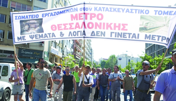 Στους δρόμους βγήκαν εργαζόμενοι και απολυμένοι του μετρό Θεσσαλονίκης. Συγκεντρώθηκαν χθες το πρωί στο εργοτάξιο της οδού Αγίας Σοφίας και έκαναν πορεία έως το γραφείο του γενικού γραμματέα Δημοσίων Εργων Στράτου Σιμόπουλου, στην οδό Μητροπόλεως. Κρατούσαν μάλιστα και ένα πανό στο οποίο αναγραφόταν: «Με τα ψέματα δεν γίνεται μετρό – Οχι στις απολύσεις – Οχι στον εμπαιγμό».