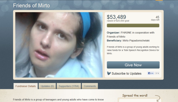 Ξεπέρασε κάθε προσδοκία η ανταπόκριση του κόσμου στο διαδικτυακό «κάλεσμα ζωής» από ομάδα κοριτσιών στη Βοστόνη για την υποστήριξη της 16χρονης Μυρτώς Παπαδομιχελάκη, η οποία εξακολουθεί να νοσηλεύεται σε νοσοκομείο της Μασαχουσέτης, μετά τον βάναυσο τραυματισμό της από τον Πακιστανό Αχμέτ Βακάς στην Πάρο (Ιούλιος 2012). Σε μόλις λίγα 24ωρα συγκεντρώθηκαν πολύ περισσότερα χρήματα από αυτά που απαιτούνταν για την αγορά του ειδικού μηχανήματος, που θα βοηθήσει τη 16χρονη στην ομιλία και τη διατροφή της. Η πρωτοβουλία ανήκει στη Νεολαία της Ομοσπονδίας Ελληνοαμερικανικών Σωματείων Νέας Αγγλίας, η οποία. θέλοντας να σταθεί στο πλευρό της άτυχης κοπέλας, εξακολουθεί να «τρέχει» τον έρανο μέσω της ιστοσελίδας www.youcaring.com. Αλλωστε η Μυρτώ θα χρειαστεί να κάνει ακόμη μία επέμβαση (στη σπονδυλική στήλη), με το κόστος της να ανέρχεται στα 80.000 δολάρια (σχεδόν 60.000 ευρώ).