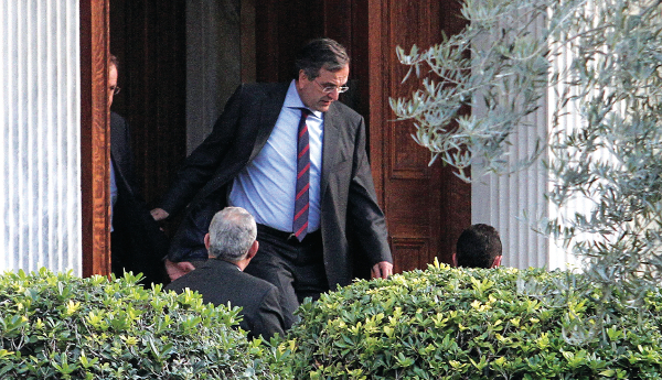 Ηταν γύρω στις 2.30 μ.μ., λίγο μετά την ολοκλήρωση της συνάντησης του Αντώνη Σαμαρά με το προεδρείο του Πανελλήνιου Ιατρικού Συλλόγου, όταν ο πρωθυπουργός βγήκε από το Μέγαρο Μαξίμου και μαζί με δύο στενούς συνεργάτες του, τον διευθυντή του γραφείου του Κώστα Μπούρα και τον υπουργό Επικρατείας Δημήτρη Σταμάτη, κατηφόρισε λίγα μέτρα πιο κάτω, στο Προεδρικό Μέγαρο, χωρίς μάλιστα τη συνοδεία τηλεοπτικών συνεργείων. Η αιφνιδιαστική -χωρίς να έχει ανακοινωθεί- επίσκεψη στον Κάρολο Παπούλια, σύμφωνα με κυβερνητικές πηγές, είχε προγραμματιστεί εδώ και αρκετές μέρες, όταν ο Πρόεδρος είχε απευθύνει σχετική πρόσκληση στον πρωθυπουργό, προκειμένου να συζητήσουν, μακριά από τις τυπικότητες, για όλα τα τρέχοντα ζητήματα.