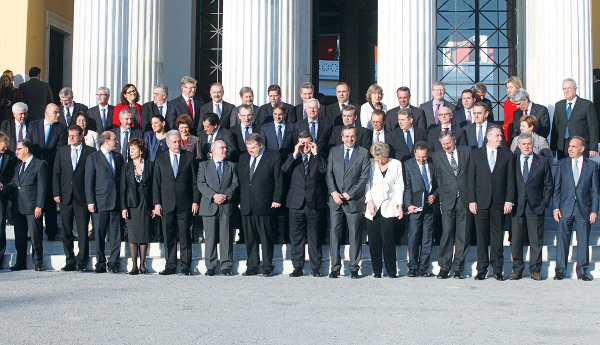 Ο πρωθυπουργός Αντώνης Σαμαράς -που νωρίτερα στο Ζάππειο είχε τονίσει ότι η Ελλάδα «έχασε» σε βιοτικό επίπεδο τόσα όσα δεν έχει χάσει κανένας λαός από τον Β’ Παγκόσμιο Πόλεμο μέχρι σήμερα- κατά την ομιλία του στο Μέγαρο Μουσικής, με την οποία κήρυξε την έναρξη της ελληνικής προεδρίας στην Ε.Ε., επιχείρησε να ευαισθητοποιήσει τους εταίρους κάνοντας ιστορικές αναφορές. Πρώτη από όλες, αυτή στην ημέρα που ο «οραματιστής Κωνσταντίνος Καραμανλής, πριν από 35 χρόνια, υπέγραφε την ένταξη της Ελλάδας στην Ευρώπη». Τότε που ο σημερινός πρωθυπουργός ήταν νεαρός βουλευτής. Στη συνέχεια προσπάθησε να θυμίσει στους εταίρους τι σημαίνει Ευρώπη, με στόχο να αναδείξει η ελληνική προεδρία αυτά που ενώνουν τους Ευρωπαίους.
