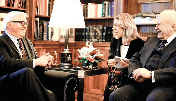 Νωρίτερα ο Γερμανός υπουργός πέρασε το κατώφλι του Μεγάρου Μαξίμου, όπου συναντήθηκε με τον Αντώνη Σαμαρά παρουσία και του Ευάγγελου Βενιζέλου, δηλώνοντας ότι «η Ελλάδα επιδεικνύει αποφασιστικότητα και θάρρος», εκφράζοντας τη στήριξή του στο μεταρρυθμιστικό έργο της κυβέρνησης και καλώντας τη να το ολοκληρώσει. Ο κ. Στάινμαγερ έγινε δεκτός και από τον πρόεδρο της Βουλής Βαγγέλη Μεϊμαράκη, ο οποίος τόνισε ότι οι πολίτες θα πρέπει να υπερψηφίσουν τα κόμματα που πιστεύουν στην περαιτέρω αναπτυξιακή και σωστή πορεία της Ευρώπης.