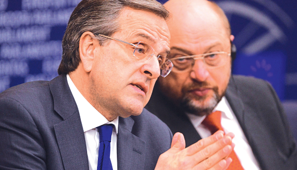 Ο Αντώνης Σαμαράς, μιλώντας τόσο στο Ευρωκοινοβούλιο όσο και στους δημοσιογράφους στην κοινή συνέντευξή του με τον πρόεδρο του Ευρωκοινοβουλίου Μ. Σουλτς τόνισε: «Τους Ελληνες πολίτες τούς ενδιαφέρει να παραμείνουν μέρος της Ευρώπης. Τα δύσκολα είναι παρελθόν, είμαστε κοντά στην ανάκαμψη. Η αντιπολίτευση δεν αποτελεί εναλλακτική λύση, δεν προσφέρει λύση, ακροβατεί μεταξύ συγκαλυμμένου εξτρεμισμού και λαϊκισμού. Επενδύουν στον φόβο, δεν δίνουν ελπίδα στους Ελληνες πολίτες. Η πλειοψηφία των Ελλήνων πολιτών και των βουλευτών δεν επιθυμεί πρόωρες εκλογές».