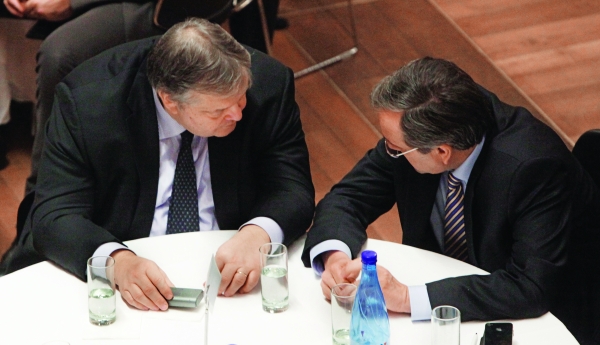 Αισιόδοξος για τις διαπραγματεύσεις με την τρόικα εμφανίστηκε μετά τη συνάντηση ο Ευάγγελος Βενιζέλος. Οπως είπε, «όλα είναι υπό έλεγχο», ενώ, αναφερόμενος στις δηλώσεις Ρεν που έγιναν νωρίτερα, ότι η συζήτηση για το ελληνικό χρέος θα γίνει το καλοκαίρι, ο κ. Βενιζέλος σημείωσε: «Η κυβέρνηση θεωρεί ότι, όταν υπάρξει πιστοποίηση του πρωτογενούς πλεονάσματος, μπορεί να ξεκινήσει συζήτηση για το χρέος». Η κυβέρνηση εκτιμά ότι από τον προσεχή Απρίλιο θα πρέπει να τηρηθεί η συμφωνία του Eurogroup και να ξεκινήσει η συζήτηση για το χρέος μας. Πλέον, όπως υποστηρίζουν στην κυβέρνηση, είναι η σειρά των δανειστών μας να τηρήσουν τη συμφωνία για τη διευθέτηση του ελληνικού χρέους, είτε με τη μείωση επιτοκίων είτε με την επιμήκυνση του χρόνου αποπληρωμής των οφειλών, την ίδια στιγμή πάντως που η τρόικα ανέβαλλε για ακόμη μία φορά την επιστροφή της στην Αθήνα.