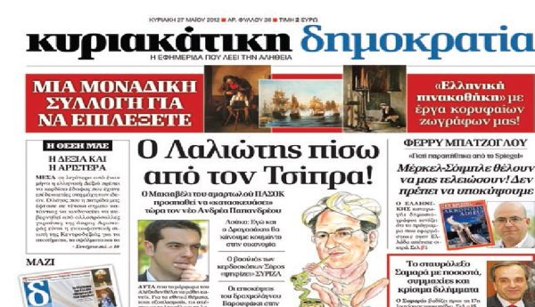 Αυτήν την εβδομάδα η εφημερίδα «Το Βήμα» προσέφερε στους αναγνώστες της τα μεγάλα έργα των Ελλήνων ζωγράφων! Η «δημοκρατία», τουλάχιστον πριν από έναν χρόνο, είχε και επί σειρά Κυριακών το ίδιο δώρο! Δεν είναι κακό να αναγνωρίζονται οι έξυπνες ιδέες και να επαναλαμβάνονται. Αποτρόπαιο είναι όμως να παραβιάζονται και να τσαλαπατούνται οι κανόνες του υγιούς ανταγωνισμού σε μια αγορά που ψυχορραγεί! Μιλάμε για την απροκάλυπτη διαφήμιση της εφημερίδας από το κεντρικό δελτίο ειδήσεων του Mega. Oπου μια εμπορική προσφορά παρουσιάζεται -δωρεάν φυσικά!- ως… μεγάλο γεγονός που ενδιαφέρει όλον τον κόσμο κάτω από τη μύτη του ΕΣΡ (του Εθνικού Συμβουλίου Ραδιοτηλεόρασης, που παριστάνει ότι δεν είδε και δεν άκουσε τίποτα).