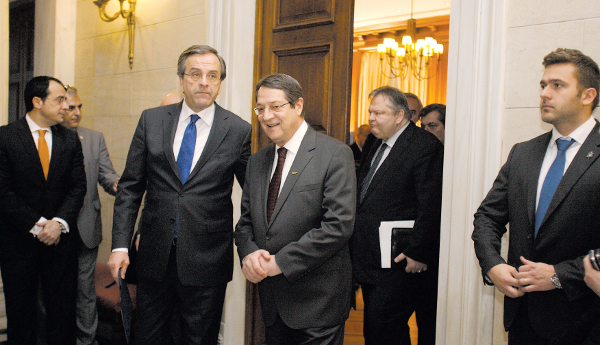 Την ώρα που οι αντιδράσεις σε Λευκωσία και Αθήνα κλιμακώνονται με αφορμή το σχέδιο του κοινού ανακοινωθέντος για το Κυπριακό που… μυρίζει Σχέδιο Ανάν, ο Πρόεδρος της Μεγαλονήσου βρέθηκε χθες στην Αθήνα για να συναντηθεί μόνο με την κυβέρνηση. Ο κ. Αναστασιάδης συναντήθηκε με τον πρωθυπουργό Αντώνη Σαμαρά και τον υπουργό Εξωτερικών Ευάγγελο Βενιζέλο, λίγες ώρες πριν προχωρήσει στο διάγγελμά του στο οποίο ανακοινώνει την επανέναρξη του διαλόγου, που στο τέλος του προβλέπει τα ταυτόχρονα δημοψηφίσματα. Οπως αποκάλυψε χθες η «δημοκρατία», το σημείο που προκαλεί μεγάλες αντιδράσεις είναι η ύπαρξη δύο «κρατών» αλλά και οι γκρίζες ζώνες και τα ερωτηματικά που προκαλούν.