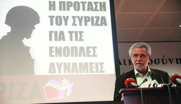 Ο διεθνισμός και η προσαρμογή του στρατεύματος στις κοινωνικές αλλαγές αναφέρθηκαν ως προτεραιότητες του αμυντικού προγράμματος του ΣΥΡΙΖΑ, σύμφωνα με τον υπεύθυνο για την εξωτερική και την αμυντική πολιτική Κώστα Ησυχο, ενώ ο βουλευτής Θεοδ. Δρίτσας μίλησε για καθεστώς στεγανών στο στράτευμα και για σχέδιο επιβολής «δημοκρατικού και κοινωνικού ελέγχου» με επιτροπές της Βουλής που θα υποκαθιστούν το υπουργείο Εθνικής Αμύνης, παρεμβαίνοντας σε κάθε μικρή ή μεγάλη απόφαση, ακόμη και σε καθαρά υπηρεσιακά ζητήματα όπως η επιλογή του αρχηγού ΓΕΕΘΑ.