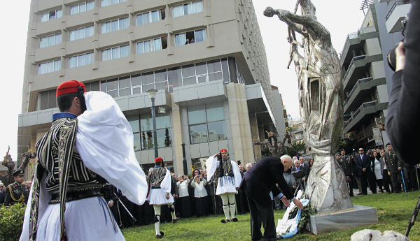 Σε κλίμα έντονης συγκίνησης έγιναν χθες τα αποκαλυπτήρια του μνημείου των Ηρώων του απελευθερωτικού αγώνα της ΕΟΚΑ 1955-1959 στο αλσύλιο Πάρκο Σαντιάγο Χιλής (κοντά στο ξενοδοχείο «Κάραβελ»), παρουσία του Προέδρου της Δημοκρατίας Κάρολου Παπούλια, του Προέδρου της Κυπριακής Δημοκρατίας Νίκου Αναστασιάδη, εκπροσώπων συλλόγων και παλαίμαχων αγωνιστών. Οι παρευρισκόμενοι, τιμώντας τους ανθρώπους που δεν δίστασαν στιγμή ακόμα και μπροστά στον θάνατο, απέδωσαν φόρο τιμής και ευχήθηκαν να ξημερώσει γρήγορα η μέρα που η Κύπρος θα δικαιωθεί και δεν θα υπάρχει ούτε μία σπιθαμή γης της που να είναι υπό κατοχή. Το μνημείο απεικονίζει «ένα χέρι όπου κάθε δάχτυλο είναι μια μορφή αγωνιστή και συνάμα η παλάμη ένα παράθυρο αισιοδοξίας», όπως είπε ο καλλιτέχνης που το φιλοτέχνησε Αριστείδης Πατζόγλου. Το μεσημέρι αντιπροσωπία του Συμβουλίου Ιστορικής Μνήμης Αγώνα ΕΟΚΑ 1955-1959 συναντήθηκε με τον υπουργό Εθνικής Αμυνας Δημήτρη Αβραμόπουλο, ο οποίοςτους ευχαρίστησε για τη συνεισφορά τους στη διατήρηση του οράματος των αγωνιστών της ΕΟΚΑ. Παράλληλα, ευχήθηκε «η Κύπρος αδιαίρετη να ακολουθήσει τον δρόμο της προόδου και της ανάπτυξης, συμβάλλοντας στη σταθερότητα, καθώς αναδεικνύεται, ως ένας εκ των ισχυρότερων παραγόντων, στα σύνορα της Ευρώπης». Συνάντηση με τον Πρόεδρο της Κύπρου κ. Αναστασιάδη είχαν επίσης ο πρόεδρος των Ανεξάρτητων Ελλήνων Πάνος Καμμένος, ο πρόεδρος της ΔΗΜ.ΑΡ. Φώτης Κουβέλης και ο γ.γ. του ΚΚΕ Δημήτρης Κουτσούμπας.