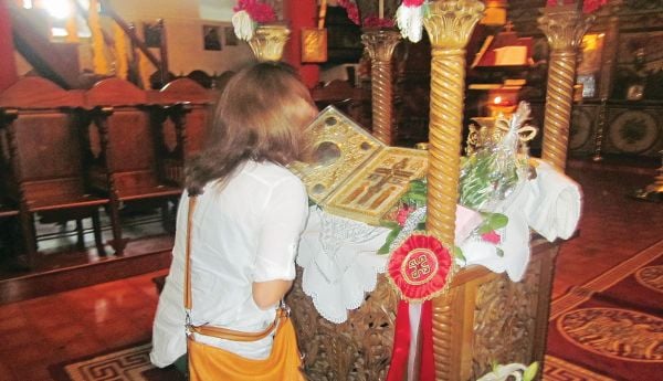«Το 1753 οι κάτοικοι των Πετροκεράσων, που τότε ονομάζονταν Ραβνά, πέθαιναν κατά δεκάδες από μια λοιμώδη ασθένεια. Κάποιοι πιστοί πρότειναν τότε να ζητήσουν από τους πατέρες της Ιεράς Μονής Ξηροποτάμου να μεταφέρουν στον τόπο τους τον Τίμιο Σταυρό, όπως κι έγινε. Με το που έφτασε το Τίμιο Ξύλο στο χωριό, η αρρώστια άρχισε να υποχωρεί, οι κάτοικοι γιατρεύτηκαν και σώθηκαν» εξιστορεί στη «δημοκρατία» ο 73χρονος Γιώργος Κουκλιάτης, γραμματέας του εκκλησιαστικού συμβουλίου στα Πετροκέρασα.