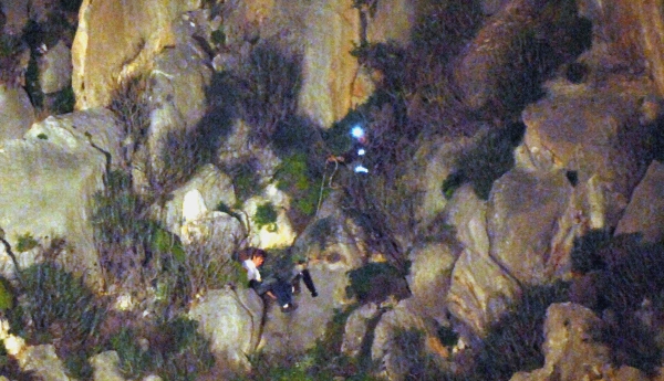 Τελικά ομάδα της ΕΜΑΚ με τη συνδρομή μελών της Ελληνικής Ένωσης Καταδρομών, τα οποία είχαν κατέβει τον γκρεμό στο παρελθόν και ήταν εξοικειωμένοι με την περιοχή, κατάφεραν να κατέβουν τον γκρεμό και να απεγκλωβίσουν λίγο πριν τις 20:30 και τα τρία άτομα τα οποία είναι καλά στην υγεία τους.