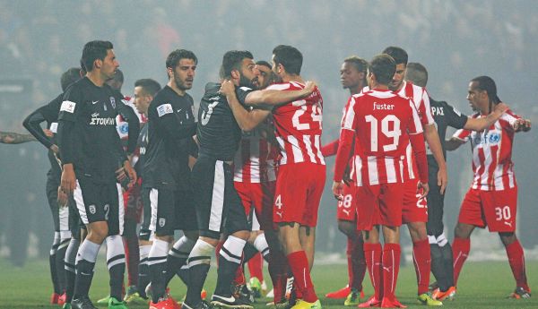 Μέσα στον γενικό χαμό ο Μάνταλος έδειξε εννιά λεπτά καθυστέρηση. Σε ένδειξη διαμαρτυρίας για όσα διαδραματίζονταν στο τερέν, ο Μίτσελ έφυγε από τον πάγκο για τα αποδυτήρια. Το παιχνίδι τελικά ολοκληρώθηκε με επεισοδιακό τρόπο στο 105΄. Πάντως ο Ολυμπιακός θα μπορούσε να πάρει την πρόκριση, όταν την κεφαλιά του Μαρκάνο έδιωξε πάνω στη γραμμή ο Κίτσιου.
