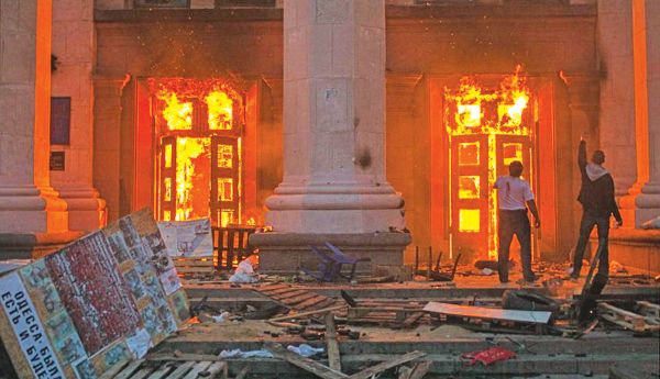 Ακόμη και η απελευθέρωση των κρατουμένων όμως δεν έδειχνε ικανή χθες να σβήσει τη φωτιά της οργής που προκάλεσε στους φιλορώσους το ολοκαύτωμα της Παρασκευής. Αυτόπτες μάρτυρες αναφέρουν ότι η πυρκαγιά που προκάλεσε τον θάνατο δεκάδων φιλορώσων στην Οδησσό προκλήθηκε όταν χιλιάδες οπαδοί δύο ομάδων ποδοσφαίρου μαζί με φιλοευρωπαίους Ουκρανούς θέλησαν να πάρουν εκδίκηση για την επίθεση που είχαν δεχθεί νωρίτερα από φιλορώσους. Ετσι λοιπόν κινήθηκαν απειλητικά εναντίον των αντιπάλων τους, πολλοί εκ των οποίων βρίσκονταν στο κτίριο των συνδικάτων, με αποτέλεσμα πολλοί να ρίξουν στο εσωτερικό του βόμβες μολότοφ, οι οποίες προκάλεσαν την πυρκαγιά. Οι εικόνες που ακολούθησαν ήταν συγκλονιστικές, όσοι δεν πέθαναν στο εσωτερικό του κτιρίου από ασφυξία προσπάθησαν να σωθούν πηδώντας στο κενό από τα παράθυρα, ενώ κάποιοι που έβγαιναν έξω ζαλισμένοι από τον πυκνό καπνό είτε προπηλακίζονταν από το συγκεντρωμένο πλήθος -που σύμφωνα με φιλορωσικές πηγές αποτελούνταν από νεοναζί οπαδούς του διαβόητου Δεξιού Τομέα- είτε έπεφταν νεκροί από τις σφαίρες… αγνώστων.