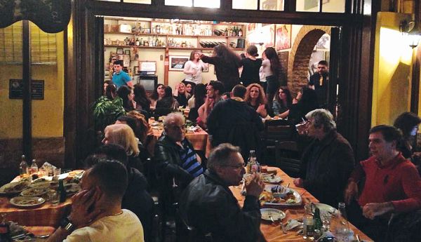 Λίγο αργότερα και εκατοντάδες μέτρα μακριά καταγράφηκε ένα δεύτερο γεύμα, πολύ πιο λαϊκό και χωρίς μέτρα ασφαλείας. Εδώ η συνάντηση έγινε στο εστιατόριο Ούζο στον Πίνακα, που βρίσκεται στην πλατεία Αθωνος, με συνδαιτυμόνες όλους τους υποψήφιους ευρωβουλευτές των ΑΝ.ΕΛ., οι οποίοι συνέφαγαν με τον πρόεδρο του κόμματος Πάνο Καμμένο και πολλά στελέχη του κόμματος στη Θεσσαλονίκη. Η ομήγυρη ξεπέρασε τα 100 άτομα, το κέφι ήταν μεγάλο, ενώ το μενού περιελάμβανε κρεατικά και βαρελίσιο λευκό κρασί. Ο πρόεδρος των ΑΝ.ΕΛ. δεν ήταν από την αρχή στο τραπέζι, καθώς είχε κάποια τηλεοπτική υποχρέωση, αλλά μόλις επέστρεψε, το κέφι άναψε για τα καλά. Ο κ. Καμμένος έβγαλε τη γραβάτα και το σακάκι, και έμεινε με ένα κοντομάνικο μπλουζάκι που είχε επάνω του στάμπα κατά του κλεισίματος της ΕΡΤ. Παρήγγειλε καυτερά και πικάντικα και σιγοτραγούδησε διάφορα παλαιά τραγούδια που ακούστηκαν στο μαγαζί. Πάντως τις εντυπώσεις της βραδιάς έκλεψε η Καρολίνα Παντίρη, που είναι ανιψιά της Σοφία Βέμπο και η οποία τραγούδησε πολλά τραγούδια, με το κέφι να κορυφώνεται με το «Ομορφη Θεσσαλονίκη» και το «Δίχτυ».