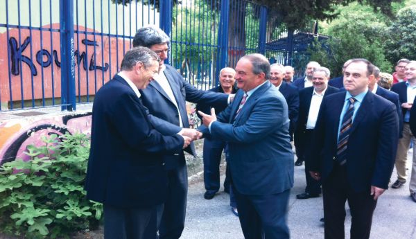 Ο πρώην πρωθυπουργός ψήφισε και πάλι πολύ νωρίς και στη συνέχεια αναχώρησε για την Αθήνα. Παρόντες ήταν ουκ ολίγοι φίλοι αλλά και κομματικά στελέχη της Ν.Δ., όπως ο υποψήφιος περιφερειάρχης Γιάννης Ιωαννίδης, ο πρόεδρος και ο γενικός διευθυντής της Διοικούσας Μηνάς Σαμαντζίδης και Φίλιππος Ζαφειρίου, καθώς και οι παλιοί και στενοί φίλοι του Βάκης Φραντζής, Τέλης Θωμόπουλος. Λεωνίδας Τσολέκας, Θέμης Καρτσιώτης, Ανδρέας Λεούδης, Δημήτρης Πανοζάχος και Δημήτρης Δαρνάκας, τον οποίο μάλιστα πείραξε βλέποντάς τον δίπλα στον Ιωαννίδη. «Πρώτα έρχεται ο Δαρνάκας και μετά ο Ιωαννίδης» σχολίασε ο πρώην πρωθυπουργός, ο οποίος και πάλι αποχώρησε χωρίς να κάνει πολιτικές δηλώσεις. Εκλεισε έτσι ένα 36ωρο παρουσίας στη Θεσσαλονίκη, το οποίο κύλησε με χαλαρές συζητήσεις με φίλους, μια βραδινή έξοδο και πολλή… Ρεάλ.