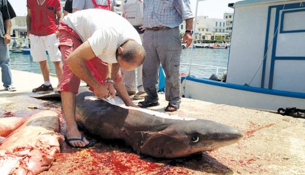 Στο μεταξύ, ακόμα μια ασυνήθιστη ψαριά πέτυχε προ ημερών στην Τήνο ο Γιώργος Γαλανάκης. Επρόκειτο για έναν αγριοκαρχαρία (Odontaspis ferox), που παρά το… τρομακτικό όνομά του δεν θεωρείται επικίνδυνος για τον άνθρωπο. Οι κάτοικοι της Τήνου έσπευσαν να παρακολουθήσουν τον τεμαχισμό του ψαριού, που έχει κάνει λιγοστές εμφανίσεις στις ελληνικές θάλασσες. Ο αγριοκαρχαρίας (που μπορεί να φτάσει σε μήκος τα τέσσερα μέτρα και σε βάρος τα 300 κιλά) εντοπίζεται σε αρκετά μεγάλα βάθη, όμως συχνά ανεβαίνει προς την επιφάνεια ή πλησιάζει στην ακτή.