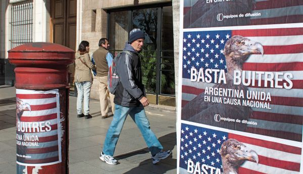Στη λογική των σεναρίων της επόμενης ημέρας, αλλά και εν αναμονή πιθανού «ξεπουλήματος» των ομολόγων της και νέας κερδοσκοπίας μόλις πέσει η αξία τους βρίσκεται η Αργεντινή, λίγα εικοσιτετράωρα μετά την αξιολόγηση της χώρας σε καθεστώς «επιλεκτικής χρεοκοπίας» από τη Standard & Poor’s. Τα ξημερώματα της Πέμπτης, έληξε το χρονικό περιθώριο που της είχε ορίσει αμερικανικό δικαστήριο για να αποπληρώσει τα κερδοσκοπικά funds – τα ίδια «γεράκια» που αξίωναν, και πέτυχαν στην Ελλάδα, την στο ακέραιο αποπληρωμή των τίτλων που αγόρασαν εν μέσω αναδιάρθρωσης. Το σχήμα των κερδοσκόπων αποτελείται από «παλιούς γνώριμους» που δεν συμμετείχαν στο ελληνικό «κούρεμα» μέσω του περίφημου PSI: τον Κένεθ Νταρτ, ιδιοκτήτη της επενδυτικής Dart Management, ο οποίος βρισκόταν πίσω από το ομόλογο των 436.000.000 ευρώ που είχε πληρώσει η κυβέρνηση Παπαδήμου (είχε αγοράσει ομόλογα του ΟΣΕ, που είχε καταρρεύσει ήδη, και, με δεδομένο ότι είχαν ρήτρα βρετανικού δικαίου, δεν μπήκαν στο «κούρεμα»), και τον Πολ Σίνγκερ, ιδρυτή του hedge fund Elliott Capital Management (μέλος του ομίλου η NML), το οποίο θεωρείται ότι είχε επίσης στην κατοχή του μέρος των ελληνικών τίτλων που αποπληρώθηκαν στο ακέραιο. Στην περίπτωση της Αργεντινής, ο Νταρτ είχε αγοράσει ομόλογα 1 δισ. δολαρίων έναντι 300.000.000 δολαρίων προτού η χώρα καταρρεύσει. Ο δε Πολ Σίνγκερ διεκδικεί 225.000.000 δολάρια – ο ίδιος άνθρωπος που το 2012 ζήτησε και πέτυχε την κατάσχεση μιας αργεντίνικης φρεγάτας στο λιμάνι της Γκάνας, ως μέρος της διεκδίκησης της αποπληρωμής χρέους. Ο δικαστικός αγώνας για να αποπληρωθούν στο σύνολό τους τα ομόλογα από το Μπουένος Αϊρες κρατάει ήδη μία δεκαετία.