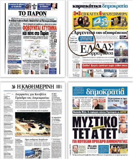 Από τις 3 Αυγούστου η «κυριακάτικη δημοκρατία» αποκάλυψε πρωτοσέλιδα τις αποκλειστικές πληροφορίες για το «τρομοκρατικό χτύπημα» που θορύβησε την ελληνική κυβέρνηση και την τρόικα, το οποίο οδήγησε στην απόφαση να συναντηθούν για την «αξιολόγηση» στο Παρίσι! Χθες, Κυριακή 24 Αυγούστου, (έπειτα από 21 ολόκληρες ημέρες), το έμαθε και «Το Παρόν»! Από τις 13 Μαρτίου 2014, η «δημοκρατία» μπουμπούνισε ως πρώτο θέμα την πρόθεση του Μαξίμου να προτείνει τον Φώτη Κουβέλη της ΔΗΜ.ΑΡ. για Πρόεδρο της Δημοκρατίας! Χθες, Κυριακή 24 Αυγούστου, είχε το ανάλογο ρεπορτάζ και η «Καθημερινή»!