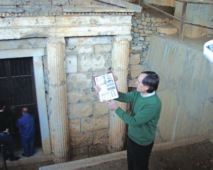 Ο καθηγητής Κλασικής Αρχαιολογίας του ΑΠΘ Παναγιώτης Φάκλαρης μπροστά στον τάφο της Βεργίνας
