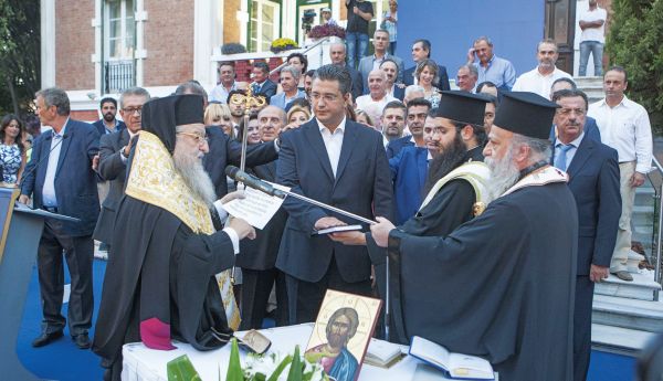 Με μια σεμνή τελετή, όπου κυριάρχησαν τα ανοίγματα στις άλλες παρατάξεις αλλά και φράσεις που παρέπεμπαν στον Κώστα Καραμανλή, έκανε χθες την επίσημη εκκίνηση της θητείας του ο Απόστολος Τζιτζικώστας.Στην τελετή ορκωμοσίας των νέων συμβούλων, που έγινε το βράδυ στον αύλειο χώρο της Περιφέρειας Κεντρικής Μακεδονίας, παρουσία δεκάδων εκπροσώπων των τοπικών φορέων της πόλης, καθώς και πλήθους κόσμου, ο Mr 71% έδωσε το δικό του στίγμα για την επόμενη πενταετία, ενώ έστειλε μήνυμα ενότητας. «Θέλουμε το περιφερειακό συμβούλιο να γίνει ένα πεδίο δημιουργικής σύνθεσης ιδεών, με θετικές προτάσεις, με εποικοδομητική κριτική. Μαγικές λύσεις και έτοιμες συνταγές επιτυχίας ούτε υπήρχαν ούτε θα υπάρξουν ποτέ. Οι στόχοι κατακτώνται μόνο με δουλειά. Και οι καρποί της δουλειάς έρχονται πιο γρήγορα με τη συνεργασία» σημείωσε ο νεοεκλεγείς περιφερειάρχης σε μια τελετή, στην οποία χοροστάτησε ο μητροπολίτης Θεσσαλονίκης κ. Ανθιμος.