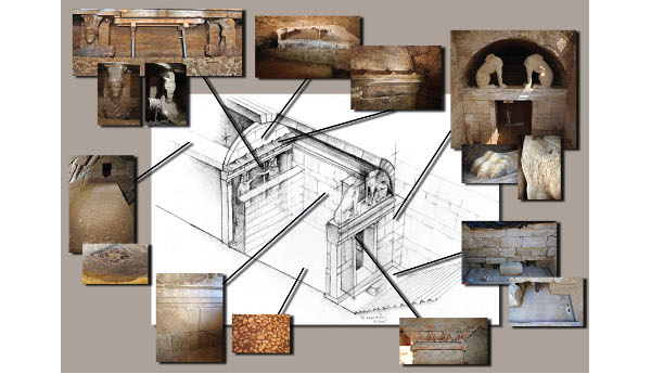 Πρόκειται για την πρώτη αξονομετρική σχεδιαστική αναπαράσταση του ταφικού μνημείου που έγινε από τον αρχιτέκτονα του υπουργείου Πολιτισμού Μιχάλη Λεφαντζή.
