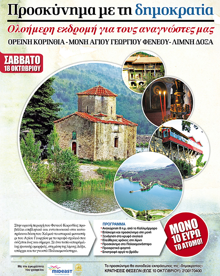 – Άφιξη στον Φενεό και επίσκεψη στο Μοναστήρι του Αγίου Γεωργίου με την