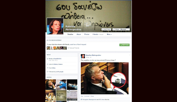 Για τέτοιο επίπεδο ενημέρωσης μιλάμε… Και η σημειολογία της υπόθεσης. Η προμετωπίδα του λογαριασμού της στο facebook είναι το σύνθημα: «Σου δανείζω αλήθεια… να πληρώνεις το ΨΕΜΑ!».