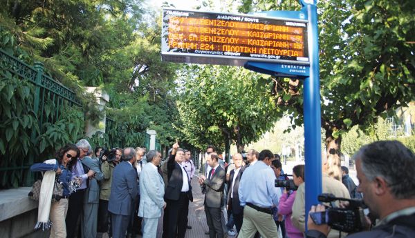 Αλλη μια ευκαιρία για εγκαίνια βρήκε χθες ο υπουργός Υποδομών Μιχάλης Χρυσοχοΐδης, ο οποίος εμφανίστηκε στο Σύνταγμα που λειτουργεί μία από τις «έξυπνες στάσεις» της λεωφορειακής γραμμής 224 (Καισαριανή – Ελ. Βενιζέλου). Πρόκειται για την πιλοτική φάση του έργου τηλεματικής στις αστικές συγκοινωνίες μέσω του οποίου οι επιβάτες θα ενημερώνονται σε πραγματικό χρόνο για τις αφίξεις των δρομολογίων. Παράλληλα θα βελτιωθεί και η διαχείριση του στόλου των οχημάτων από τους οργανισμούς.