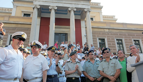 Πυρ ομαδόν από τους στρατιωτικούς που «απαντούν» στην κυβέρνηση με μαζικές αγωγές για τα αναδρομικά και την αποκατάσταση των μισθών τους. Οπως αποκάλυψε στη «δημοκρατία» ο πρόεδρος της ΠΟΕΣ (Πανελλήνια Ομοσπονδία Ενώσεων Στρατιωτικών), αντισυνταγματάρχης Ανέστης Τσουκαράκης, «οι στρατιωτικοί, σε μια προσπάθεια να εφαρμόσει η κυβέρνηση όσα προβλέπει η απόφαση του Συμβουλίου της Επικρατείας, θα καταθέσουν ομαδικές αγωγές» (ανά 50 άτομα για νομικούς λόγους).