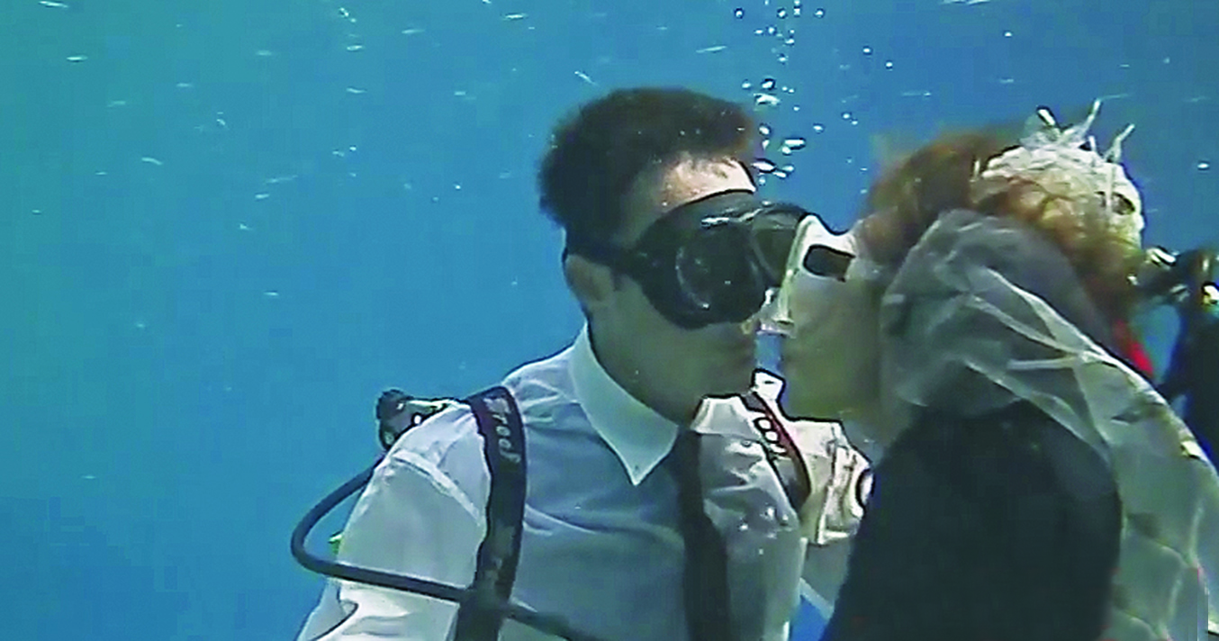 «Ταίριαξαν» το νυφικό και το γαμπριάτικο κοστούμι με… βατραχοπέδιλα, μάσκες και μπουκάλες οξυγόνου, κολύμπησαν ως την ειδικά διαμορφωμένη εξέδρα, 15 μέτρα κάτω από την επιφάνεια της θάλασσας, και αντάλλαξαν όρκους αιώνιας αγάπης στον βυθό της Κρήτης. Ο Ζαχάρα, από τη Νότια Αφρική, και η αγαπημένη του Ρενάτα, από την Ουγγαρία, αποφάσισαν να παντρέψουν τις κρητικές παραδόσεις με το χόμπι τους, τις καταδύσεις, και οργάνωσαν έναν… υποβρύχιο γάμο στο καταδυτικό κέντρο του ξενοδοχείου «Καλυψώ Cretan Village», στην περιοχή Πλακιάς στο Ρέθυμνο.