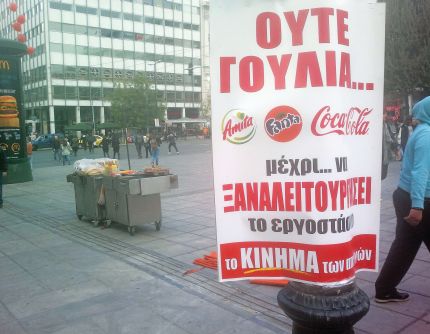 Οι πλανόδιοι σουβλατζήδες είναι περισσότεροι από τους κουκουέδες (όπως προκύπτει από τις φωτογραφίες 2 και 3. Στις φωτογραφίες 4 και 5 βλέπουμε τις… σημαιούλες που έχουν στήσει στα μαδέρια οι διαδηλωτές οι οποίοι βρίσκονται ένθεν κακείθεν των φαλάγγων. Καλή η ιδεολογία, αλλά, αν φας μία στην κεφαλή με το γκλομπ, σου φαίνεται ακόμα καλύτερη.