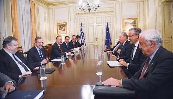 Στη σύσκεψη συμμετείχαν και ο υπουργός Οικονομικών Γκίκας Χαρδούβελης, ο αναπληρωτής υπουργός Οικονομικών Χρήστος Σταϊκούρας, ο υπουργός Ανάπτυξης Κώστας Σκρέκας και οι εκπρόσωποι των τραπεζών Δημήτρης Ματζούνης (Alpha Bank), Αλέξανδρος Τουρκολιάς (Εθνική) και Χρήστος Μεγάλου (Eurobank).