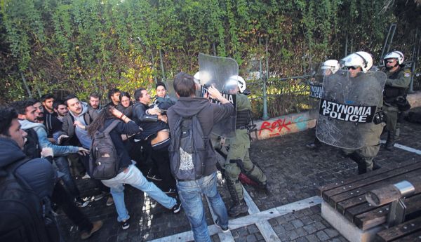 Πεδίο μάχης χθες οι δρόμοι γύρω από το ίδρυμα με συμπλοκές και χημικά μεταξύ διαδηλωτών και ΜΑΤ