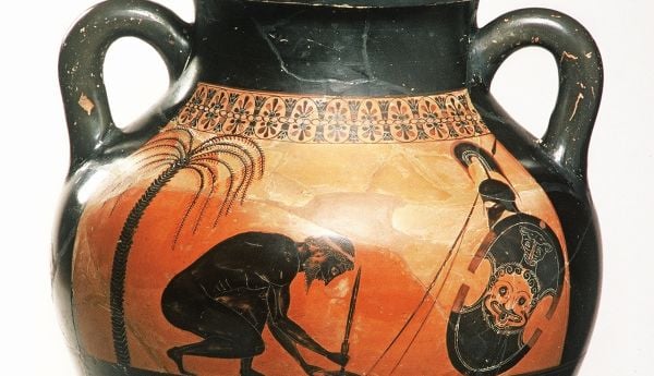Η παρουσίαση ξεκινάει με τα αντικείμενα που φέρουν παραστάσεις της αρχαίας ελληνικής τέχνης και αφορούν τη στιγμή του θανάτου. Οπως, επί παραδείγματι, ο εντυπωσιακός αμφορέας του Εξηκία από το Βρετανικό Μουσείο που δείχνει τον Αχιλλέα να σκοτώνει την Πενθεσίλεια, ενώ την ίδια στιγμή το μετανιώνει γιατί είναι ερωτευμένος μαζί της. «Τέτοια έργα δεν δημιουργούνται σήμερα» σχολίασε ο κ. Σταμπολίδης.