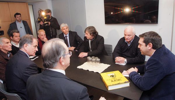 Ανακοίνωση για τη συνάντηση που είχαν με τον Αλέξη Τσίπρα εξέδωσαν οι παλαίμαχοι της ΑΕΚ, στην οποία τονίζουν ότι δεν πήραν καμία δεσμευτική απάντηση, ενώ μίλησαν για προεκλογικά ευχολόγια. Στην ανακοίνωση τονίζουν: «Συναντήσαμε τον κ. Τσίπρα, ύστερα από πρωτοβουλία του ΣΥΡΙΖΑ, και του εξηγήσαμε πόσο σημαντικό είναι για όλον τον κόσμο της ΑΕΚ να γίνει το γήπεδό μας στον χώρο όπου ζήσαμε πολλές ένδοξες στιγμές.
