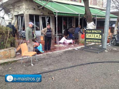 Οπως γράφει το e-maistros.gr, το ωστικό κύμα εκτόξευσε τους θαμώνες του καφενείου που είχε κλειστές τις πόρτες αρκετά μέτρα έξω από αυτό. Κάποιοι από τους τραυματίες φέρουν σοβαρά εγκαύματα και σπασμένα μέλη.