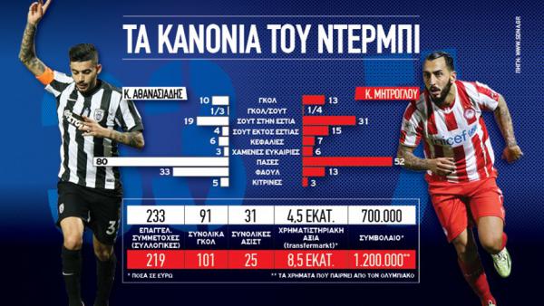 Tο ντέρμπι της Τούμπας πέραν του βαθμολογικού ενδιαφέροντος στην κούρσα του τίτλου περιλαμβάνει μία ακόμα σπουδαία μονομαχία. Αυτή ανάμεσα στον Στέφανο Αθανασιάδη και τον Κώστα Μήτρογλου. Οι δύο επιθετικοί, φέτος σηκώνουν το μεγαλύτερο βάρος του σκοραρίσματος και αποτελούν βαρόμετρο για τις ομάδες τους. Δεν αποκλείεται να είναι και αυτοί που θα κρίνουν το μεγάλο ντέρμπι της 23ης αγωνιστικής.