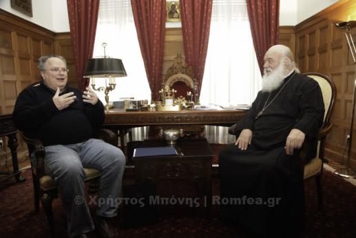 Στη συνέχεια ο νέος Υπουργός κ. Νικόλαος Κοτζιάς είχε συνάντηση με τον Αρχιεπίσκοπο Ιερώνυμο, με τον οποίο συνδέεται με μακροχρόνια φιλιά.