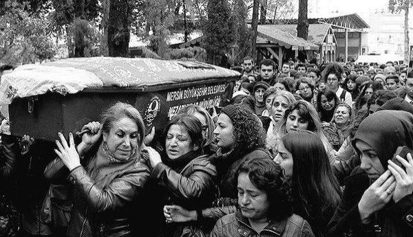 Η κηδεία της 20χρονης φοιτήτριας Ozgecan Aslan, που δολοφονήθηκε άγρια την περασμένη Τετάρτη, μετατράπηκε σε μαζική γυναικεία διαδήλωση. Στην Μερσίν, την γενέτειρα της φοιτήτριας, οι γυναίκες αψήφησαν τον Ιμάμη της πόλης που που τις κάλεσε να μείνουν στο πίσω μέρος της πομπής. Όχι μόνο βγήκαν μπροστά, αλλά κουβάλησαν και το φέρετρο.