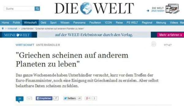 Die Welt: Οι Έλληνες ζουν σε άλλο πλανήτη