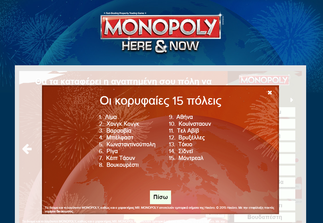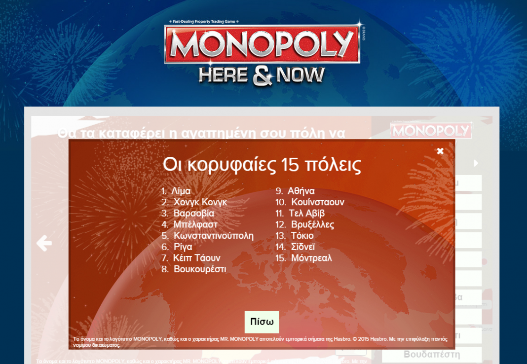 Στο διαδίκτυο εδώ και ημέρες έχει γίνει αντιληπτή η καμπάνια της πολυεθνικής Hasbro που επανασχεδιάζει το ταμπλό του γνωστού παιχνιδιού. Στη νέα έκδοσή του θα συμμετέχουν γνωστές πρωτεύουσες του κόσμου. Όμως, το σύνθημα δεν είναι επιτυχημένο διότι δημιουργείται η εντύπωση ότι η Ακρόπολις θα συμπεριληφθεί στα “ακίνητα” που εκποιούνται στο παιχνίδια και οι χρήστες πρέπει να ψηφίσουν για να συμπεριληφθεί στο υπό ανασχεδιασμό ταμπλό. Για την ιστορία, η Αθήνα έρχεται στην 9η θέση της διεθνούς κατάταξης.