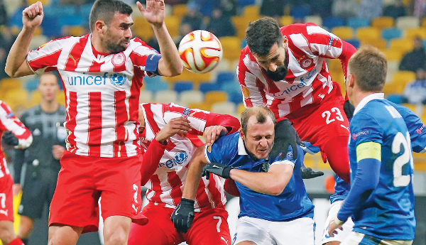 Εμφανίστηκε κατώτερος των περιστάσεων στο χιονισμένο Κίεβο, κι έτσι, μοιραία, η πρόκριση στους «16» του Γιουρόπα Λιγκ πάγωσε για τον Ολυμπιακό. Η ομάδα του Πειραιά, δεχόμενη δύο… φτηνά γκολ (50′ Κανκάβα, 54′ Ροτάν), ηττήθηκε με 2-0 από την Ντνίπρο στο «Ολιμπίσκι» και πλέον έχει πολύ δύσκολο έργο στον αγώνα ρεβάνς της 26ης Φεβρουαρίου στο Φάληρο. Οι «ερυθρόλευκοι» πάντως «φωνάζουν» για δύο φάσεις στις καθυστερήσεις και για τη διαιτησία του Αυστριακού Ρόμπερτ Σέργκενχοφερ.