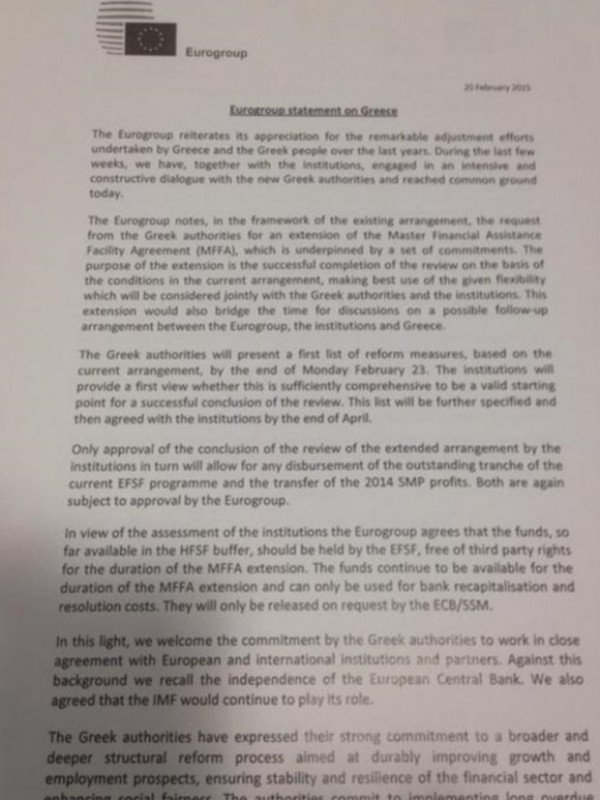 Με το που μοιράστηκε στους δημοσιογράφους στις Βρυξέλλες το κείμενο της συμφωνίας από το σημερινό Eurogroup πολλοί ήταν αυτοί που ανέβασαν τα έγγραφα στα social media.