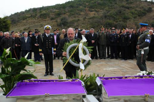 «Εκπροσωπώντας την ελληνική κυβέρνηση είμαστε εδώ για να τιμήσουμε 212 παλικάρια, άμαχοι, που εκτελέστηκαν και δολοφονήθηκαν, παραβιάζοντας κάθε έννοια ανθρωπίνου δικαιώματος σε περίοδο πολέμου. Η κλωστή της ιστορίας και η ιστορική μνήμη δεν κόπηκε ποτέ από αυτό το λαό και είμαστε εμείς εδώ σήμερα, δεσμευμένοι απέναντι στους συγγενείς των θυμάτων, σ’ εκείνους που έχουν ακόμα μνήμες ως αετόπουλα, εδώ σε αυτή τη μικρή σύναξη, θυμίζοντας μας ότι η ιστορική μνήμη είναι χρέος για τους λαούς που θέλουν να συνεχίσουν να παλεύουν για τα πανανθρώπινα ιδανικά.